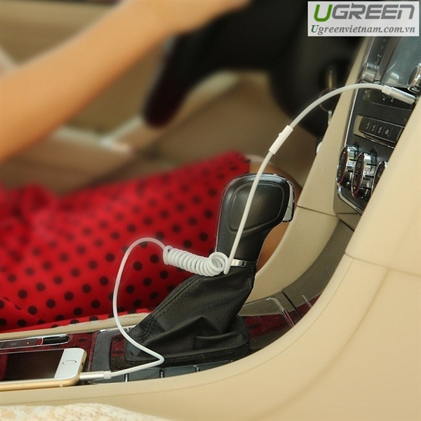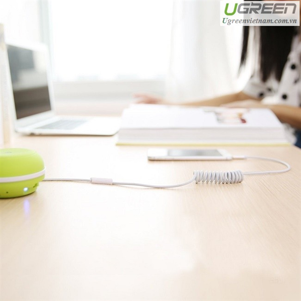 Cáp AUX lò xo chính hãng Ugreen 20706 hỗ trợ Mic màu trắng cao cấp