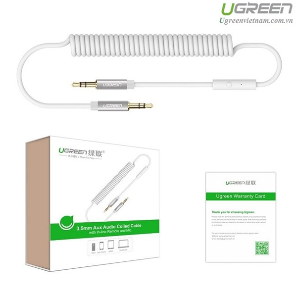 Cáp AUX lò xo dài 1m chính hãng Ugreen 20706 hỗ trợ Mic màu trắng cao cấp