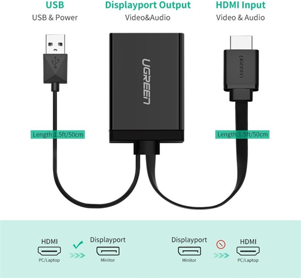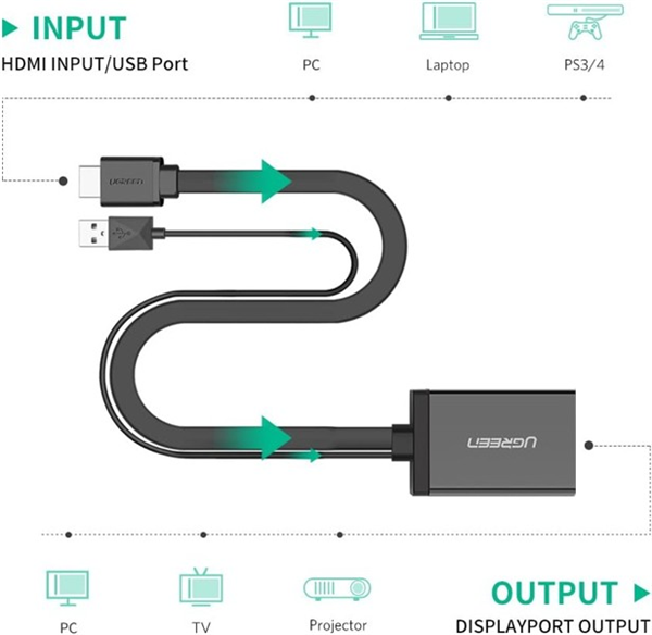 Bộ chuyển đổi HDMI + USB sang Displayport hỗ trợ 4K*2K Ugreen 40238 cao cấp