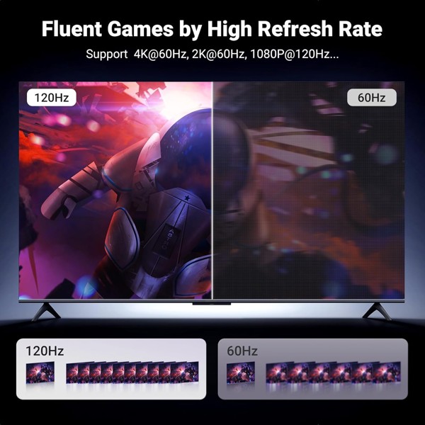 Cáp DisplayPort to HDMI Ugreen 25491 hỗ trợ độ phân giải lên tới 4K@60Hz (hỗ trợ ngược 2K@144Hz, 1080P@240Hz), mang đến cho bạn trải nghiệm màn hình 3D chân thực. Với HDR, bạn có thể thưởng thức những bức ảnh và video chân thực hơn với màu sắc tươi sáng hơn và độ tương phản cao hơn so với hình ảnh kỹ thuật số thông thường. Nó cho phép TV hoặc màn hình tạo ra hình ảnh mượt mà và trung thực, mang đến cho người dùng trải nghiệm xem và chơi game mượt mà.