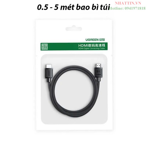 Cáp HDMI 2.1 dài 0,5M 8K@60Hz 48Gbps hỗ trợ HDR eARC Ugreen 45429 cao cấp