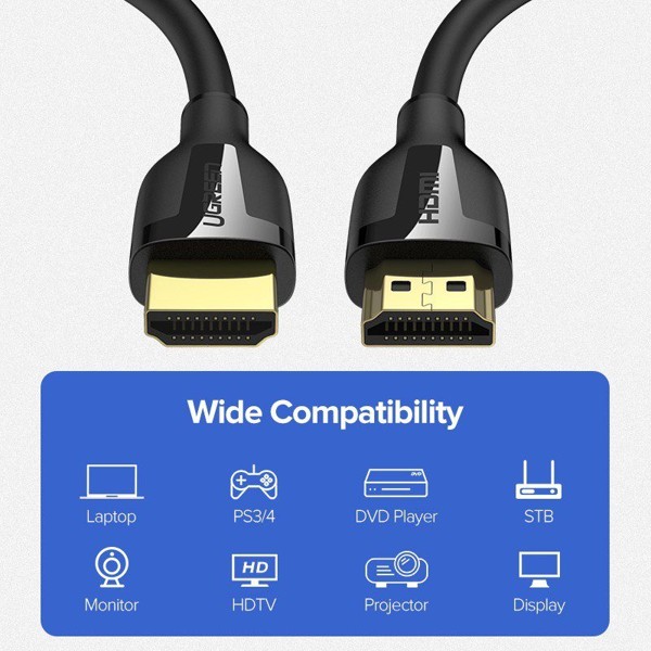 Cáp HDMI 2.0 cao cấp dài5m Ugreen 35176 hỗ trợ các định dạng trình chiếu 4K, 3D với tỉ lệ màn hình 21:9 và 32 kênh audio, với băng thông truyền dẫn lên đến 18Gbps cho phép bạn kết nối TV, máy chiếu HD/4K với đầu Blue-Ray / DVD, Xbox, Play Station, PC và các thiết bị phát cổng HDMI khác.