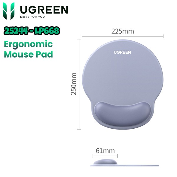 Tấm lót chuột ergonomics có phần kê cổ tay Ugreen 25244/LP668, được thiết kế để hỗ trợ cổ tay, giảm mỏi và tăng sự thoải mái khi dùng chuột lâu dài.