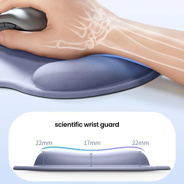 Phần kê tay được làm từ memory foam (bọt hoạt tính đàn hồi), ôm sát cổ tay giúp giảm áp lực, giảm mỏi khi thao tác chuột lâu.