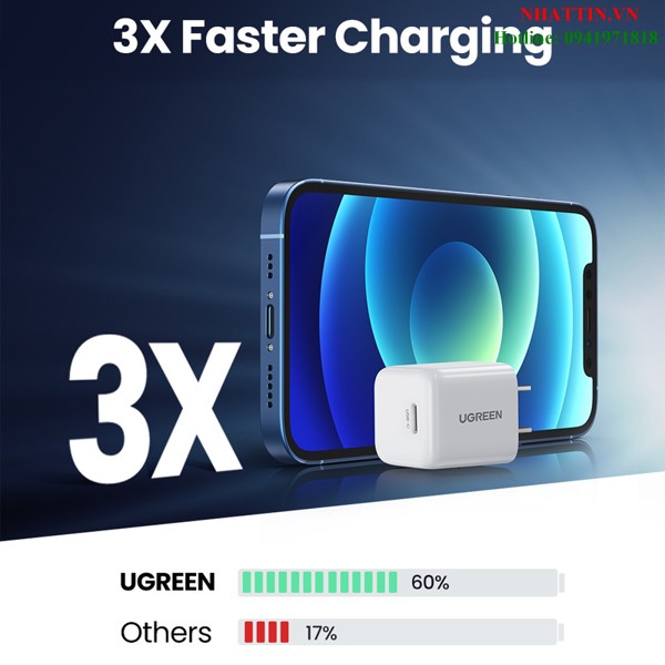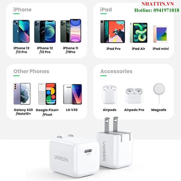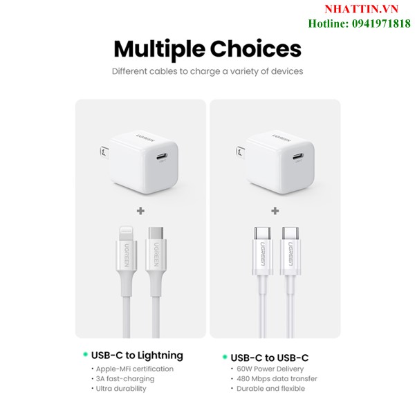Củ sạc nhanh 20W cổng USB Type-C QC4.0 Ugreen 70572 cao cấp (US Plug)
