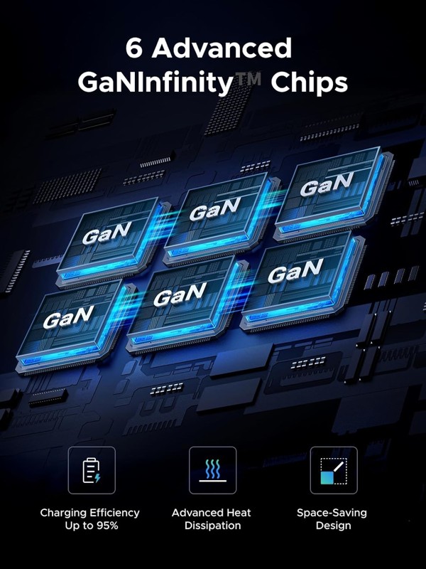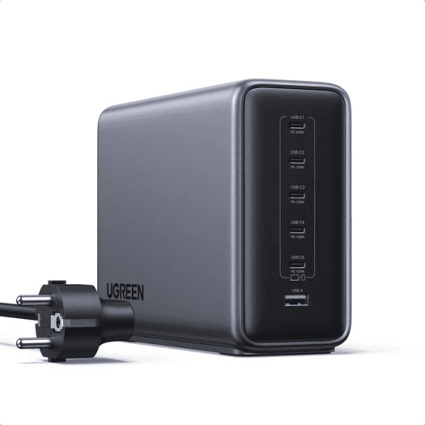 Sở hữu 6 cổng (5 cổng USB-C, 1 cổng USB-A), hỗ trợ sạc nhanh đồng thời cho nhiều thiết bị. Lý tưởng cho môi trường văn phòng và những người đam mê công nghệ cần sạc nhiều thiết bị cùng lúc.