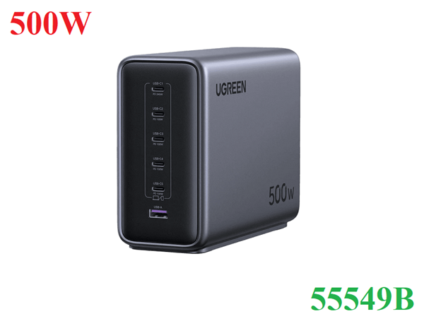 Trạm sạc nhanh để bàn Nexode 500W GaN, với 6 cổng sạc USB-C, USB-A Ugreen 55549B cao cấp