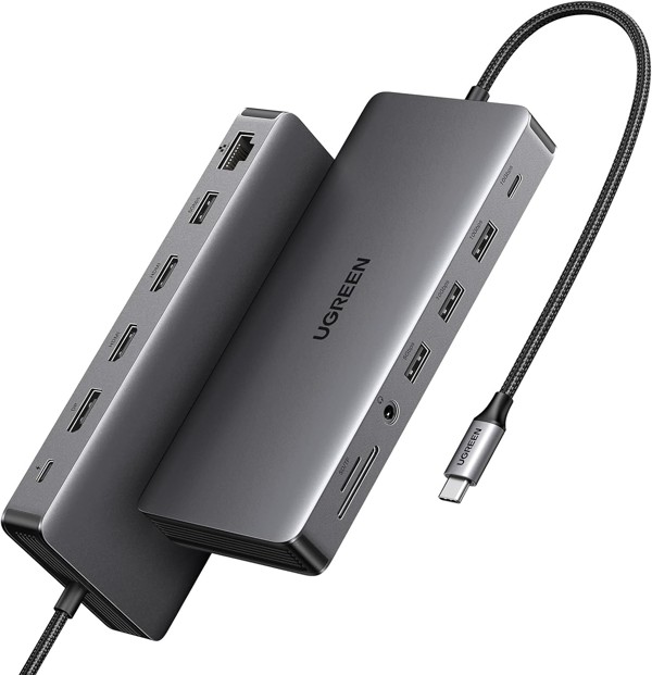 Trạm kết nối USB-C 13 trong 1 Ugreen 15978 khai thác tối đa tiềm năng của cổng USB-C trên máy tính xách tay của bạn với hai cổng HDMI, một cổng DisplayPort, một cổng USB-C 3.2 Gen 2 tốc độ 10 Gbps, hai cổng USB-A 3.2 Gen 2 tốc độ 10 Gbps, hai cổng USB A 3.0, hỗ trợ nguồn 100W, cổng RJ45 3.5MM và đầu đọc thẻ SD/Micro SD.