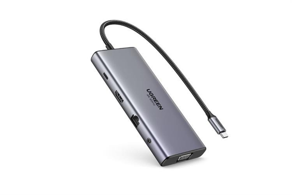 Hub USB Type-C 11 trong 1 HDMI 4K@60Hz, VGA 1080p, 2× USB-C, 2× USB-A, RJ45 Gigabit, SD/TF, Audio 3.5mm Ugreen 45520 cao cấp