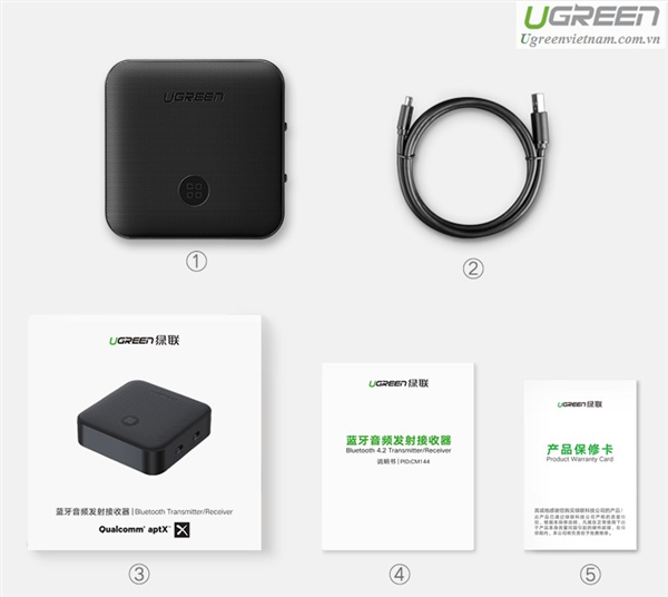 Bộ thu phát Bluetooth 4.2 (TX/RX) hỗ trợ APTX chính hãng Ugreen 50256 cao cấp